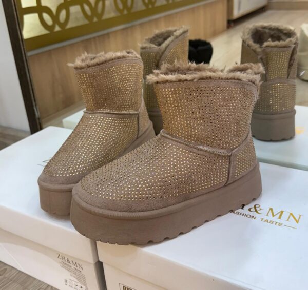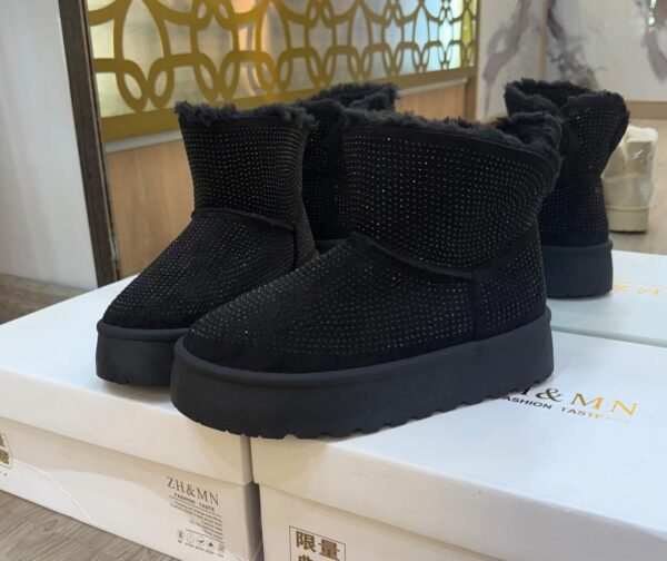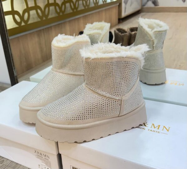 Con los Botines Winter Glaw ya no tendrás que elegir. Su suave forro de peluche interno te brinda máxima comodidad térmica, mientras que su diseño cubierto de pedrería te asegura deslumbrar tanto en el trabajo como en una cena con amigas.